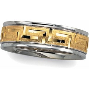 Cheap 18K Yellow Gold and Platinum Comfort Fit Greek Key Design Wedding Band For Men and Women - Size 9 Review
