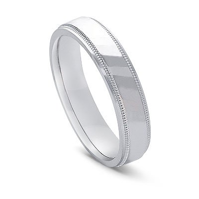 Milgrained edges & a polished shiny center create a chic look for this platinum wedding band. A matching women's band is also available. Weight of ring varies from 12.08 grams to 17.34 grams. Scroll Below to view gram weight of Individual sizes