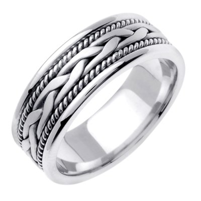 Symbolize your love and commitment with this elegantly simple wedding band. The white gold combines polished and braided finishes for a look that is stylish and timeless all at once. The inside of the ring is designed for ultimate comfort, which features a rounded interior and edges.